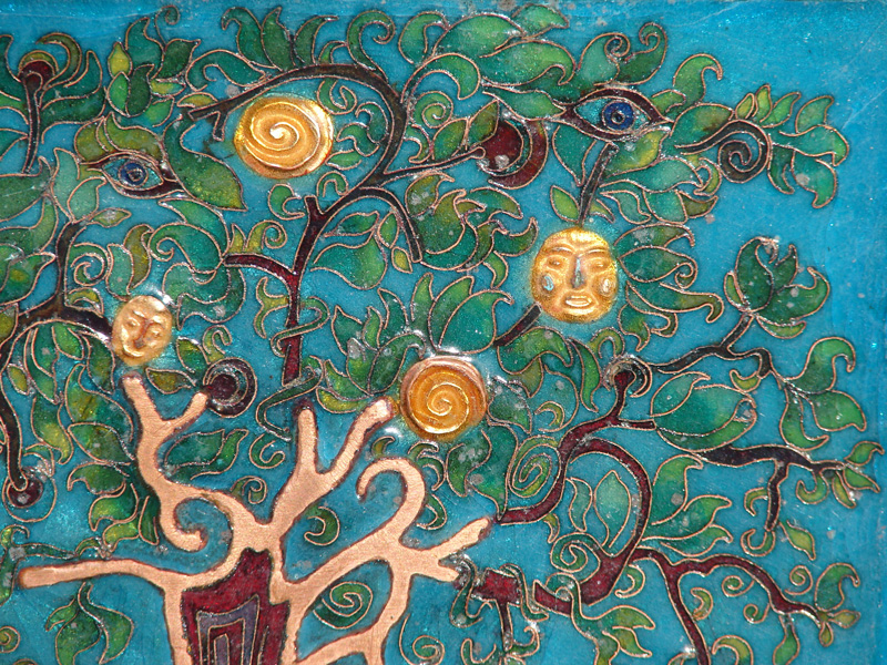 Ezen a zománcképen azt az ősi állapotot láthatjuk , amikor az ember még nem szakadt ki önálló akarata miatt a teremtett mindenekből,a mindenség rendjéből.